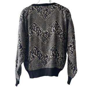 VINTAGE 80s Uniform Code Men's Patterned Sweater with Leather Trim Size XL