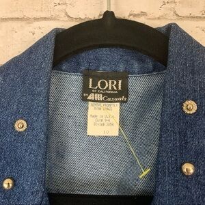 VINTAGE 80s Western Crackle Stone Embellished Denim Blazer Jacket~Size 10