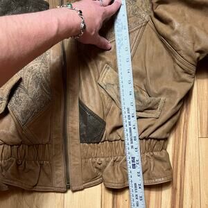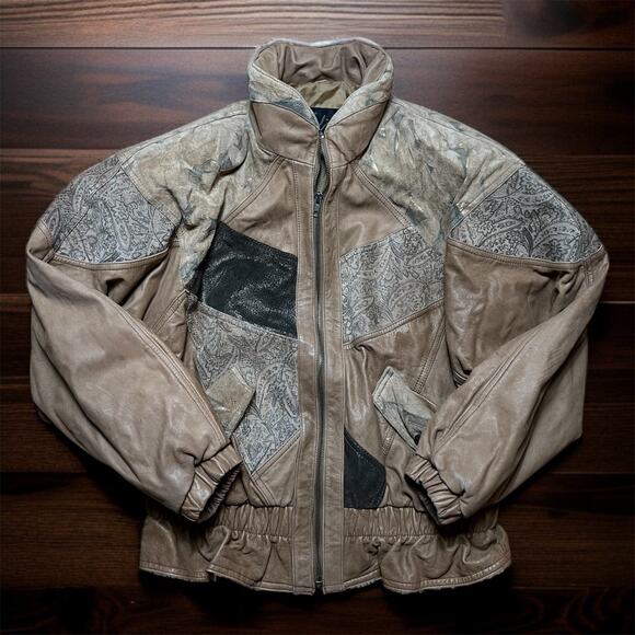 VINTAGE 80s Winlit Patchwork Leather Jacket Size M Western Bomber Jacket Printed
