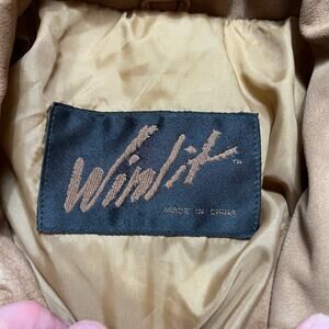 A cool patterned and patchwork leather jacket from Winlit. Good condition, has a small stain on the back of one sleeve. Marked size medium.