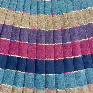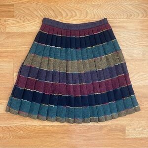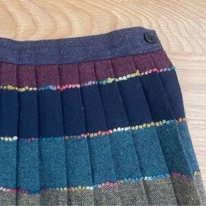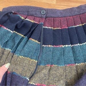I would 100% be keeping this if it fit me! This is a gorgeous, eye-catching schoolgirl esque 80s colorful multicolor pleated wool skirt in excellent vintage condition. No flaws to note. Would look amazing paired with Dr. Martens or knee high boots and works great in any season. The brand tag has been cut out but based on measurements, I’d estimate this to fit a modern day XXS-XS or 00-0. Please refer to measurements for the most accurate fit before buying.