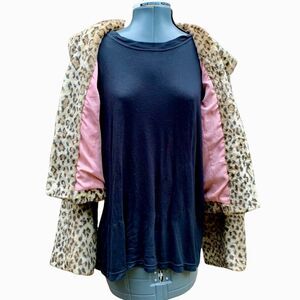 BB DAKOTA vintage vibes faux fur leopard print jacket. Super soft, sassy and classy. Light pink satin lining. Gorgeous design and very comfortable.