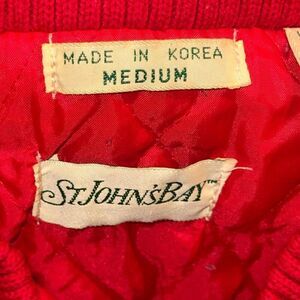 VINTAGE 80s Corduroy Vest Mens Medium Red St Johns Bay Quilt Lined Jacket Zip Up