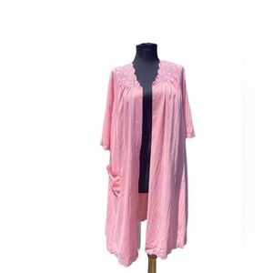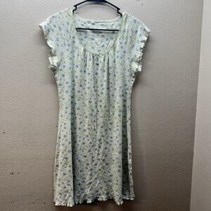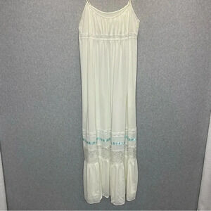 VINTAGE 80s nightgown blue full length lace cutout dress L