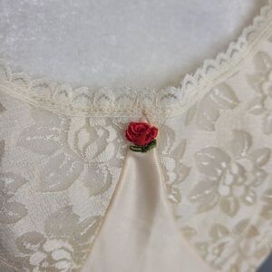VINTAGE 80s slip ivory cream lace and satin rose grunge floral dress 48/L