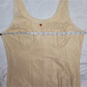 Vtg 1980s rose floral satin antistatic lace slip dress. Wear under your dress or as a dress alone fir a grunge look. Small blemish under the arm that is not very noticeable, back seam looks to have been mended. Two small rose appliques. Marked size 48 and fits like a large, please refer to measurements.
