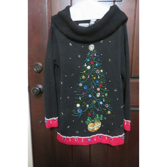 VINTAGE 90'S BP DESIGN FANCY CHRISTMAS SWEATER COWL NECK SZ M