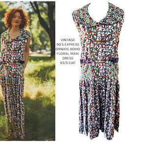 VINTAGE 90'S EXPRESS COTTAGE CORE GRANDMA BOHO FLORAL MAXI DRESS XS/S EUC