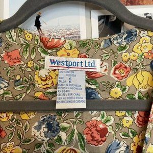 super cute fun and girly vintage neutral floral short sleeve romper with adjustable tie back to accent the waist and asymmetrical button front detail from the vintage brand westport ltd