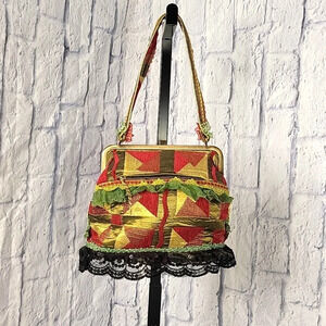 VINTAGE 90'S Grunge Boho Floral and Lacey Bag