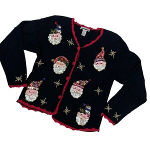 TYPE: HOLIDAY SANTA CROCHET TRIM CARDIGAN SWEATER