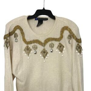 VINTAGE 90’S IB Diffusion Silk, Angora, Wool Embellished Beaded Sweater S Retro