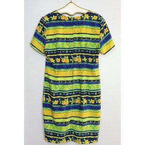 Vintage 90's lime green, yellow, and blue print sheath dress