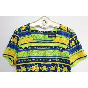 VINTAGE 90'S LIME GREEN BLUE PRINT SHEATH DRESS - SAG HARBOR - SIZE 10P