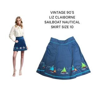 VINTAGE 90'S LIZ CLAIBORNE BLUE SAILBOAT NAUTICAL SKIRT SIZE 10