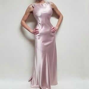 The satin drapes your body and has a full length skirt with a lovely sweep.