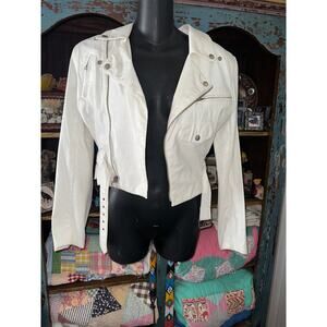 VINTAGE 90s ABS WHITE POLYURETHANE MOTO BIKER JACKET S
