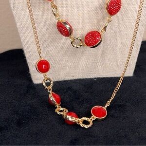 VINTAGE 90’s AVON RED GOLD LAYERED NECKLACE