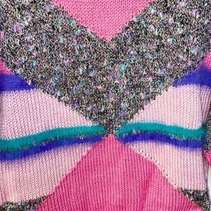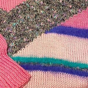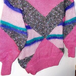VINTAGE 90s Abstract Pink Fun Soft Fuzzy Knit Apes Ski Sweater. No tag. See measurements