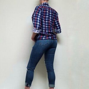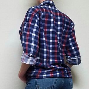 VINTAGE 90s American Edition Red White Blue Plaid Flannel Button Up Grunge Shirt