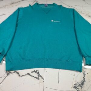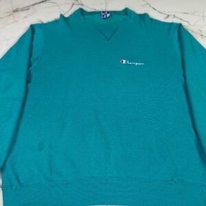 VINTAGE 90s CHAMPION CREW NECK SWEATSHIRT SZ XL TEAL BLUE THRASHED/FADED