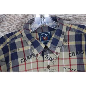 VINTAGE 90's Chaps Ralph Lauren Men's Sz Large Sports Print Button Down Shirt Tan