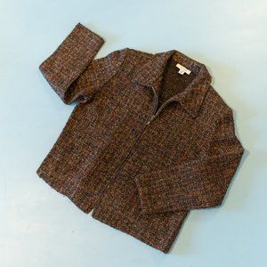VINTAGE 90's DressBarn Wool Blend Tweed Knit Brown Textured Zip Front Jacket