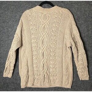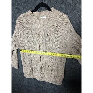 VINTAGE 90s EXPRESS TRICOT Chunky Cable Knit Sweater L Tan Bobble