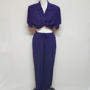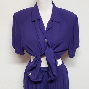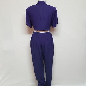 Vintage 90s Eggplant Purple Crinkle Material Two-Piece Jumpsuit Sag Harbor.