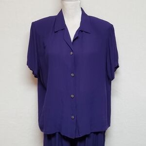 VINTAGE 90s Eggplant Purple Crinkle Material Two-Piece Jumpsuit Sag Harbor Med