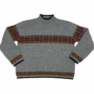 VINTAGE 90’s FAIR ISLE SHETLAND WOOL MOCK NECK OVERSIZED PULLOVER SWEATER