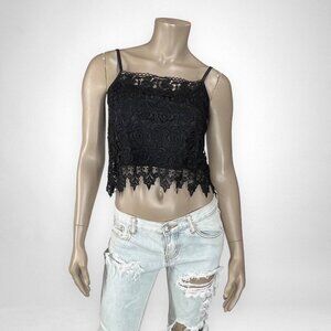VINTAGE 90s FANNY Lace Crop Sleeveless Top M
