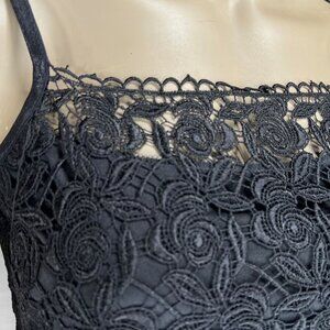Vintage lace crop top has spaghetti straps. Stretchy. Fully lined. Lightweight.