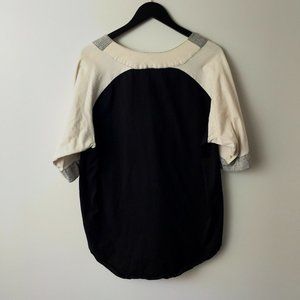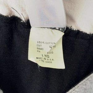 VINTAGE Tee Shirt Button Graphic T Made In USA Short Sleeve Cotton Black Large L