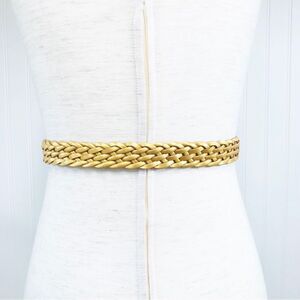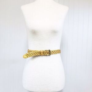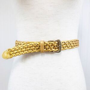VINTAGE 90s Gold Metallic Woven Leather Belt Braided Y2K Retro Medium Large