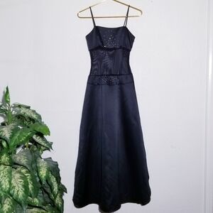 VINTAGE 90s Gunne Sax Black Mesh Satin Dress 3