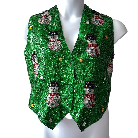 VINTAGE 90s Hand Beaded and Sequined Snowmen Ugly Christmas Vest Size Medium