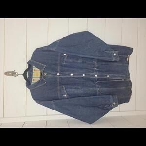 VINTAGE 90s Hip Hop Michael Sloane large long denim jacket with tied accents
