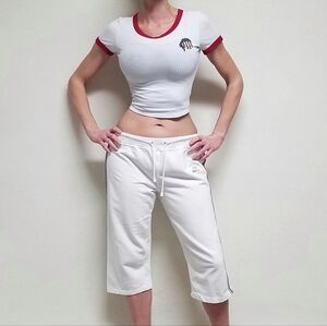 Vintage 90s Instant Action Division Champs White Striped Capri Track Pants.