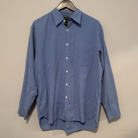 VINTAGE 90s J. Crew Men's Striped Long Sleeve Button Down in Baby Blue