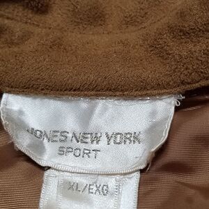 Vintage 1990s camel colored faux suede button up top by Jones New York Sport.