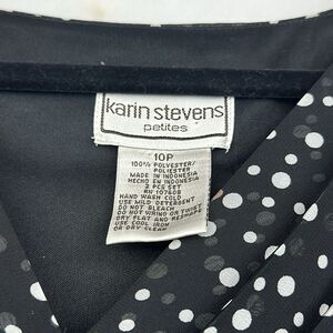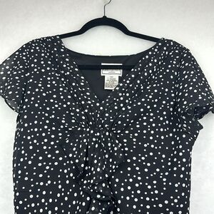 VINTAGE 90’s KARIN STEVENS BLACK & WHITE POLKA DOT BLOUSE CAP SLEEVES Sz 10P