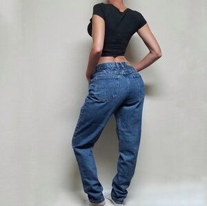 Vintage 90s Lee Mid Wash Distressed Stone Wash High Rise Jeans.
