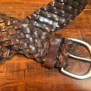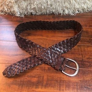 Item: VINTAGE 90s M/L BoHo Hippie Brown Woven Leather Floral Filagree Buckle Belt
