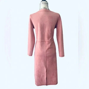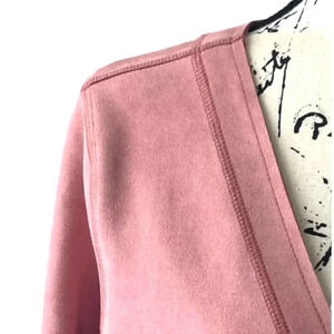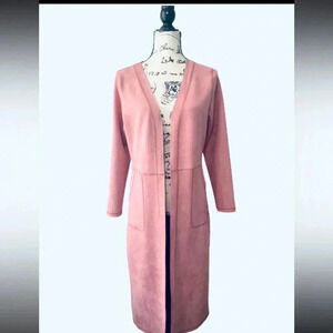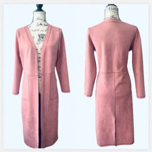 Pink suede like ankle length long jacket coat. Unlined Dusty Rose color. Flat front pockets. Raw stitch feature. Excellent condition