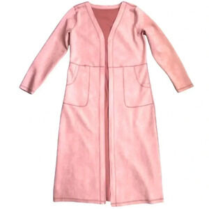 VINTAGE 90s PINK LONG JACKET COAT SUEDE LIKE OPEN STYLE STRETCH MEDIUM LARGE
