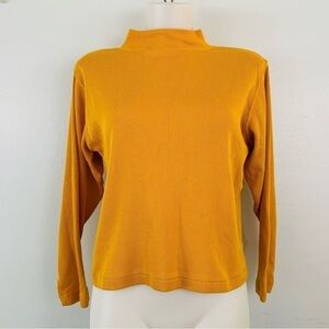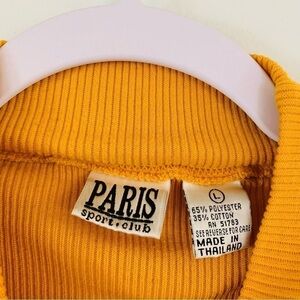 Vintage 90s Paris Sports Club Mustard Ribbed Mock Neck Shirt~Size L