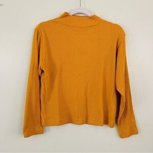 VINTAGE 90s Paris Sports Club Mustard Ribbed Mock Neck Shirt Size Large