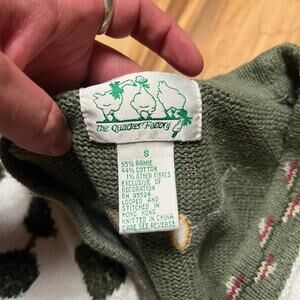 VINTAGE 90s Quacker Factory Cottage Cardigan Size S Knit Matcha Green Retro