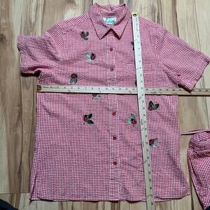VINTAGE 90s Quacker Factory Ladybug Gingham Loungewear Set Size M Retro Pajamas
